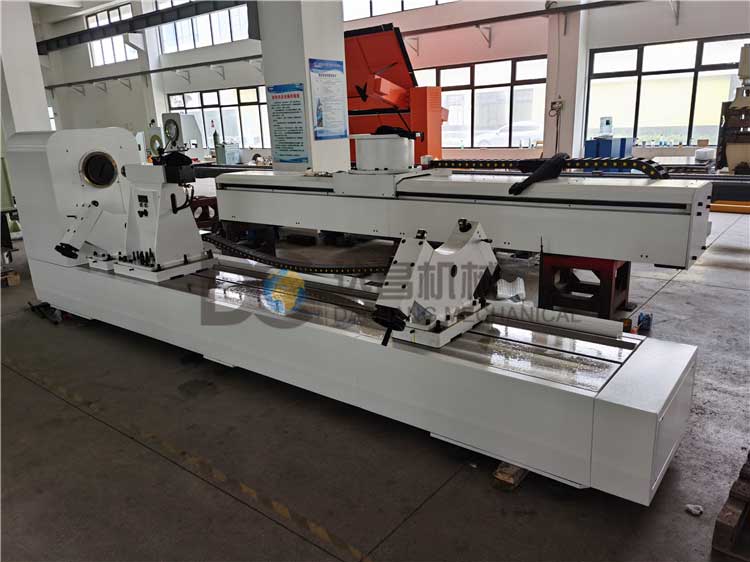 激光熔覆變位機用于長4000mm,重300Kg,直徑1000工件旋轉激光熔覆加工。激光熔覆變位機由基礎焊接底座、帶卡盤旋轉主軸箱、可以移動并定位的液壓尾頂、用于工件旋轉支撐的可調托輥,以及相關粉塵防護等組成。主軸轉速100r /min(1T以下100rpm,1T以上30rpm),主軸夾持三爪自定心卡盤500,液壓尾頂可以在基座上滑動定位并鎖緊(手動)尾頂?shù)纳炜s采用液壓驅動行程80用于工件的夾持上下料,液壓尾頂帶壓力檢測和顯示,并配帶MT5的活頂尖,保證在熔覆過程中頂出力恒定,托輥用于長工件的輔助支撐(數(shù)量2套),可適用工件直徑200到500.并可以在底座上滑動并鎖緊固定,主軸中心高距離地面900-1000。變位機包含液壓尾頂用的液壓站及相應的管線和調節(jié)控制閥1套。液壓站離拖鏈管線進口約1.5米。