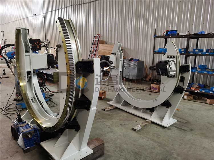 C型變位機(jī)又名滾轉(zhuǎn)機(jī)適用于長條形工件的自動化夾緊定位,可配合機(jī)器人實現(xiàn)自動化組對和焊接。在工作時改變產(chǎn)品擺放姿態(tài)、位置的自動化旋轉(zhuǎn)/翻轉(zhuǎn)裝備,在機(jī)器人編程時將變位機(jī)的控制程序輸入到機(jī)器人控制系統(tǒng)中,可以跟機(jī)器人實現(xiàn)協(xié)調(diào)運動,對機(jī)器人的靈活度進(jìn)行補(bǔ)償,提高工作效率。
